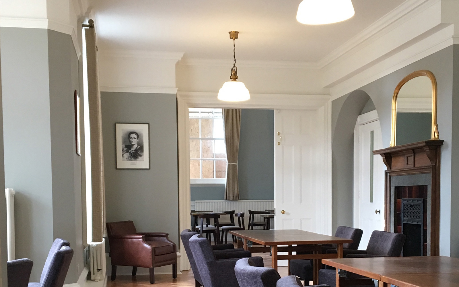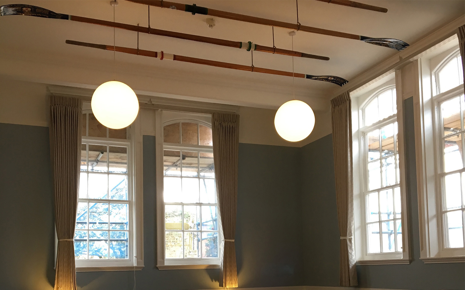 These adjoining spaces now offer contemporary Bar and small conference suite facilities for hosting an annual calendar of events combining social, intellectual and cultural pursuits. The new design reflects the architectural heritage as well as the historical and progressive nature of Hughes Hall. We are looking forward to finishing the scheme with our statement splash of artwork.